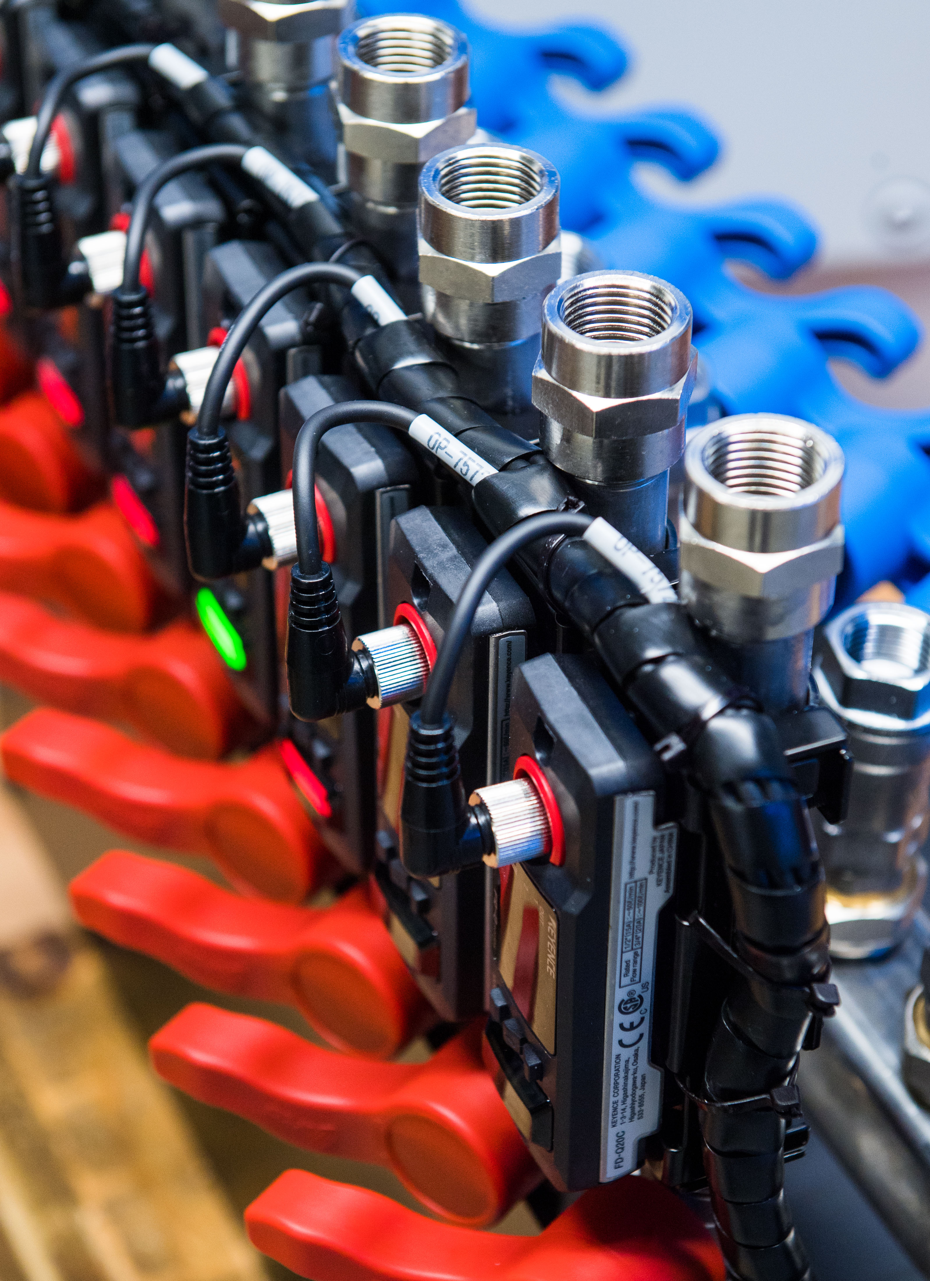 Der Verteilerblock ist das Herzstück jeder orcinus orca Installation. Das System basiert auf dem Prinzip der Parallelverteilung – für konstanten Durchfluss und eine stabile Werkzeugtemperierung. Je nach Werkzeuganforderung stehen 2 bis 144 Kühlkreise zur Verfügung, aufgeteilt in Blöcke mit 2, 4, 6, 8, 10 oder 12 Kreisen. Pro System können bis zu 20 Verteilerblöcke kombiniert werden. Durch verschiedene Einbaugrößen (standard, slim oder max) und Ausführungen (stand alone oder vollintegriert) lassen sich orcinus Systeme